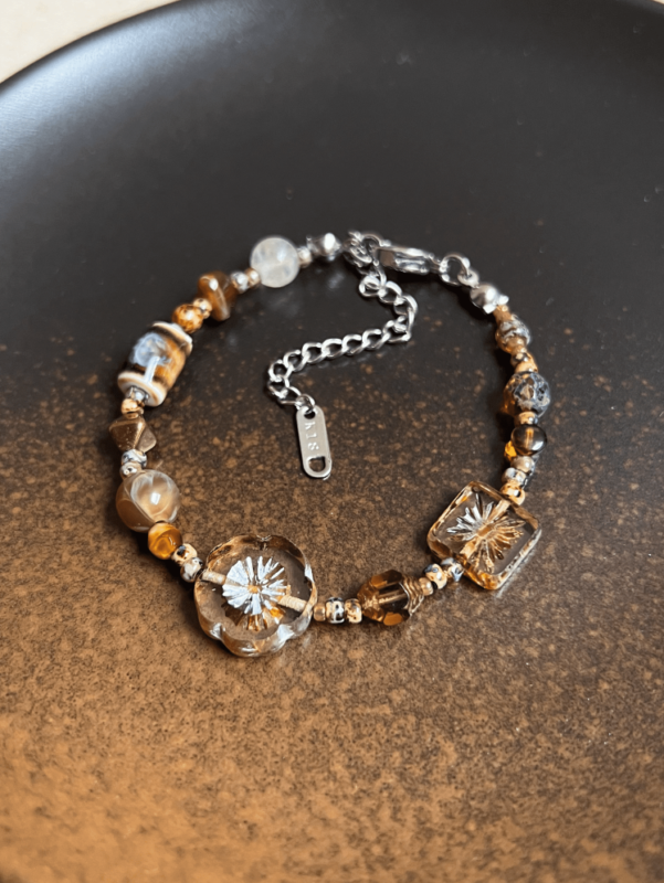 《One Leaf Knows Autumn》 imported Czech bead bracelet | Retro glass high-end beaded accessories