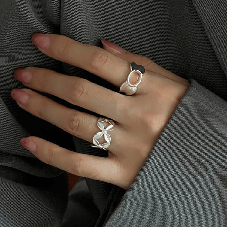 Material: S925 sterling silver Size: Inner diameter is about 1.6cm. The opening can be fine-tuned by 1-2 numbers. The weight of the curved shape is about 4.2 grams, and the weight of the hollow rectangle is about 4.4 grams. The width of the curved step is about 10mm and the width of the hollow rectangle is about 12mm The weight of each ring is not exactly the same