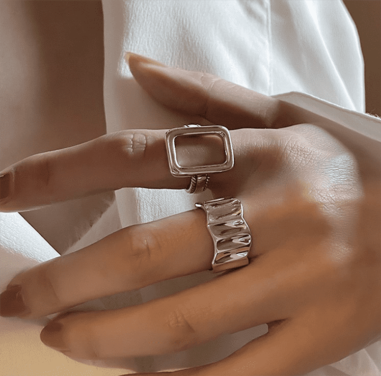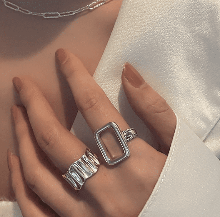 This personalized geometric style 925 sterling silver ring combines modern minimalist aesthetics with retro modern elements, breaking the traditional shape and interpreting the avant-garde style with a hollow rectangular and corrugated streamline design. Made of 925 sterling silver, it is hypoallergenic and skin-friendly, comfortable to wear and durable. The hollow rectangular shape shows a unique three-dimensional sense, while the corrugated ring gives the overall design more layers. It is suitable for free stacking or wearing alone. Casual matching can show a fashionable attitude. Whether it is daily styling or personalized wear, it can add uninhibited charm to you and create a unique fashion style!